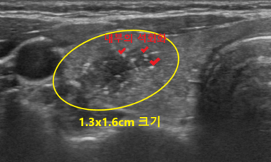 309번째 갑상선암 진단사례 (2019년8월30일) 목에 단단한 멍울이 만져지고 지속적으로 원인모를 불편한 증상이 지속되어 진료위해 내원한 환자분이셨습니다. 진찰상 앞쪽 ..