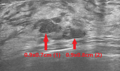 305번째 갑상선암 진단사례 (2019년7월5일) 갑상선과 관련해서 특별한 증상이 없었던 환자로 유방 초음파 검사를 받으면서 우연하게 같이 시행한 갑상선 초음파상 결절이 관..