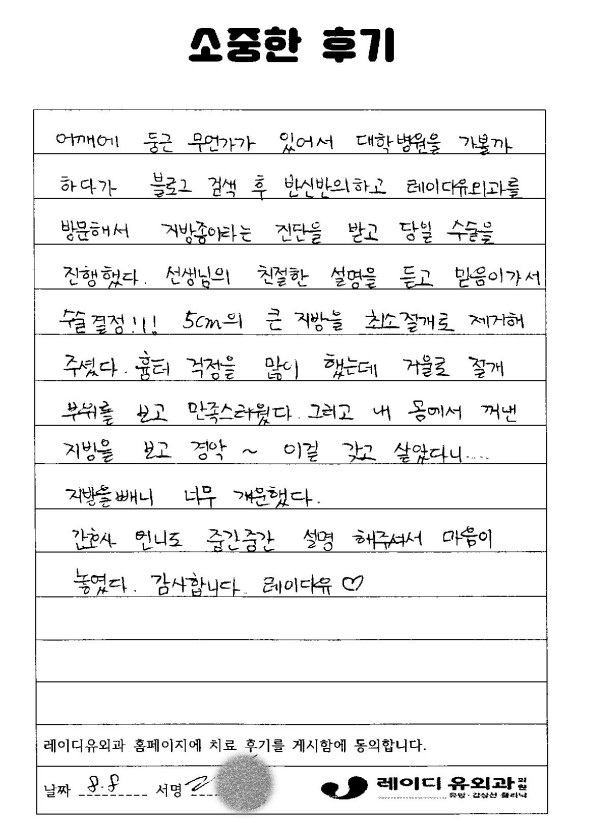 피부혹클리닉 김00님께서 작성해 주신 어깨 지방종 수술 후기입니다. 페이지 정보 작성자 레이디유 댓글 0건 조회11회 작성일 23-03-03 14:21 . 목록 이전글임00님께서 작성해 주신 엉덩이 피부혹 수술 후기입니다. 23.03.03 다음글장00님께서 작성해 주신 다발성 지방종 수술 후기입니다. 23.03.03