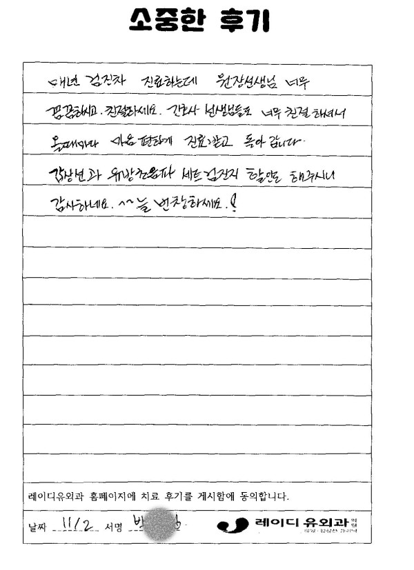 유방클리닉 박00님께서 작성해 주신 유방암 검사 후기입니다. 페이지 정보 작성자 레이디유 댓글 0건 조회10회 작성일 24-11-26 09:08 . 목록 이전글김00님께서 작성해 주신 유방암 검사 후기입니다. 24.11.26 다음글임00님께서 작성해 주신 피지낭종 수술 후기입니다. 24.11.26